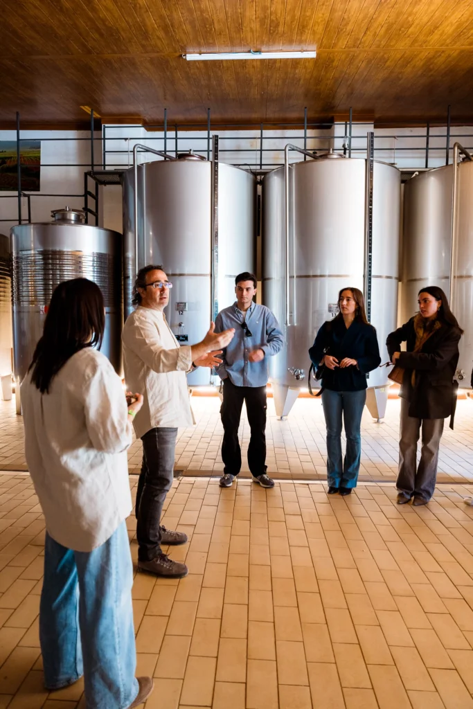 La visite commence par une promenade dans les vignobles du domaine El Peller. Ici, les visiteurs peuvent observer de près les ceps, découvrir les variétés autochtones et comprendre comment le sol, l’altitude et le climat influencent le caractère de chaque vin. C’est un moment de connexion avec la nature et avec l’essence du projet.
